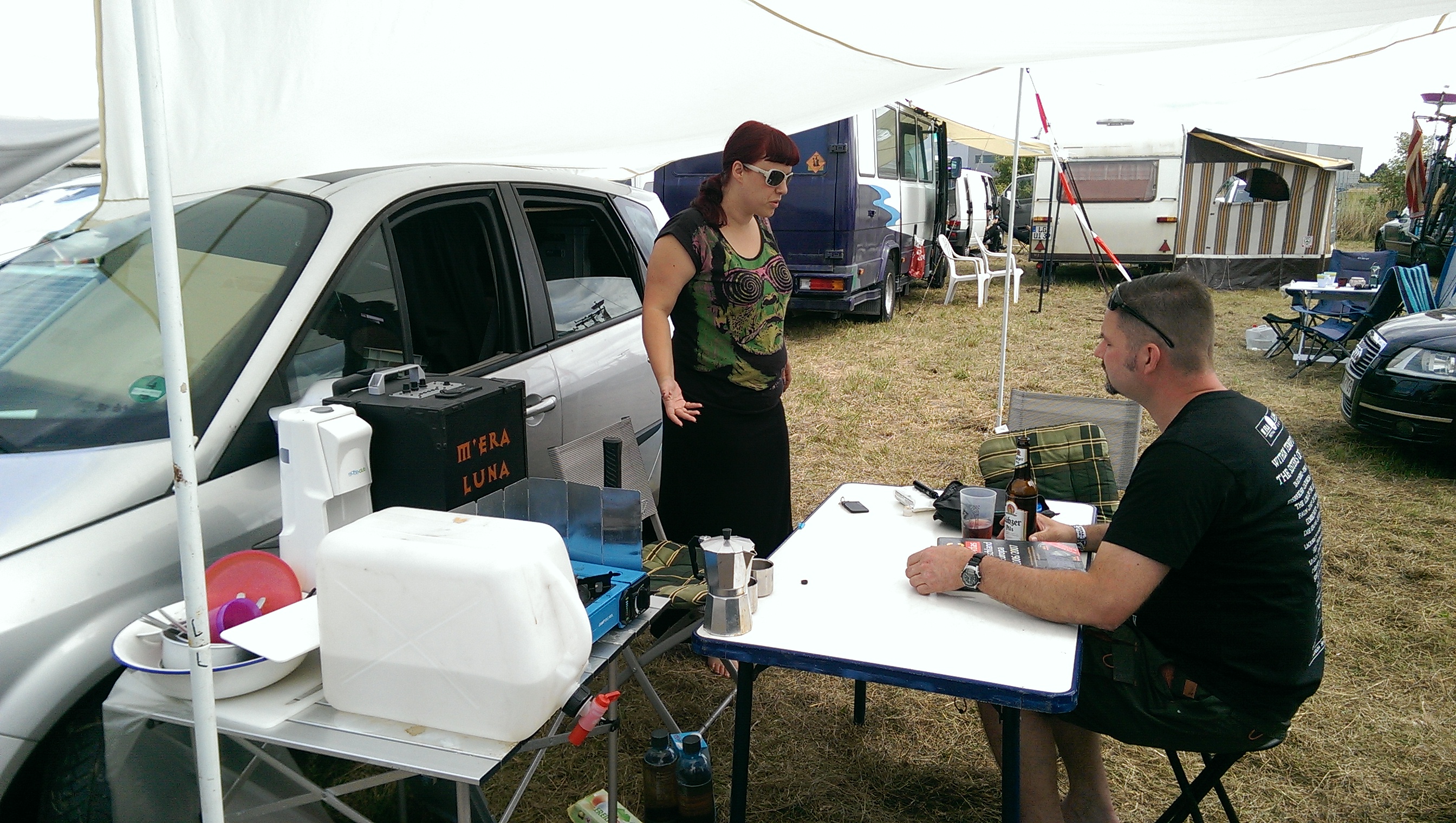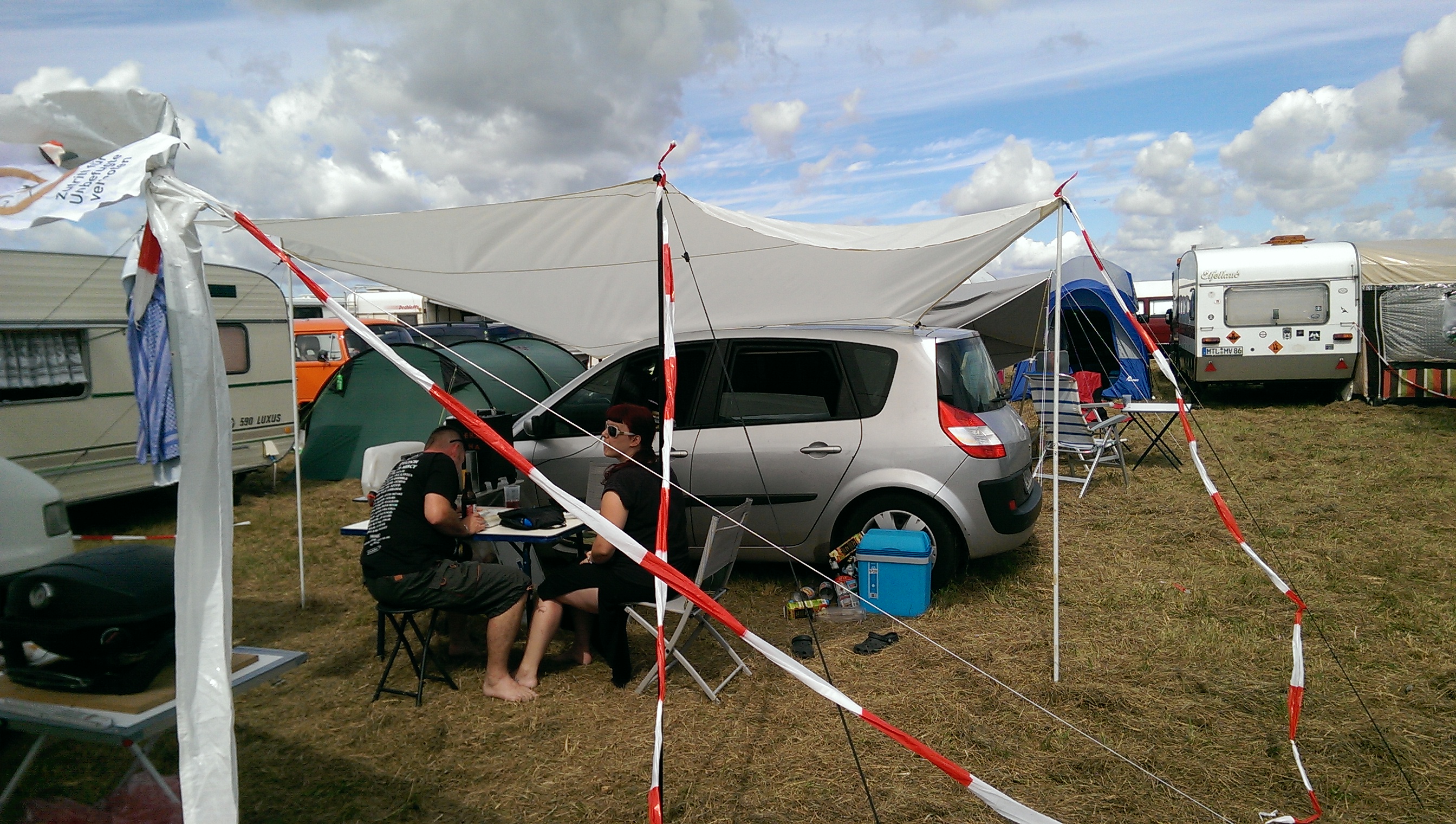 Endlich angekommen stellten wir sofort den Kontakt mit dem Vorkommando her um uns durch das Gewirr von WoMos und Gestalten lotsen zu lassen, Danke an den Lotsen-Sven.